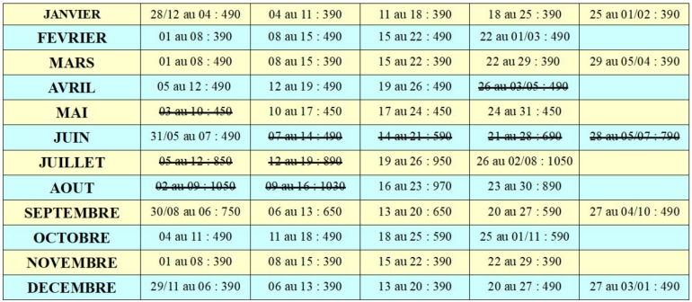 Disponibilités & Tarifs